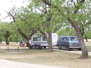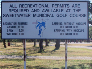 Lake Sweetwater Municipal Park Campground has 32 RV or tenting sites with water and electric hookups, plus dozens of unmarked RV and tent spaces without hookups. Call (325) 235-8816 for availability and reservations. The cost is $10 per night for sites with hookups or $6 per night for spaces without.